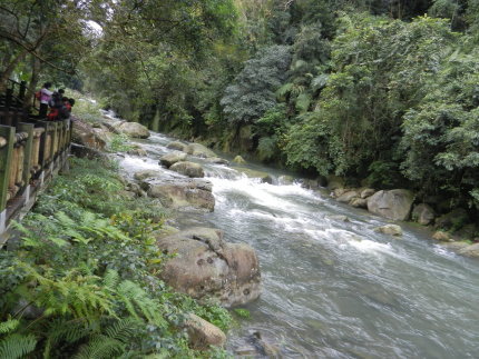 來到南庄,沿著護魚步道的木棧道往下走一小段,就聽到了淙淙流水聲。